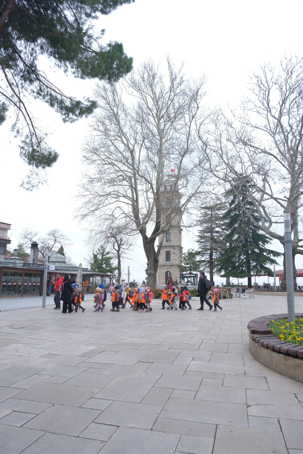 İlk durağımız, şehrin en özel noktalarından biri olan Tophane oldu. Bursa’yı yukarıdan izlerken çocuklarımız hem şehrin geçmişi hakkında sohbet etti hem de yaşadıkları kente farklı bir gözle bakma fırsatı buldu. Ardından tarihi Bursa Surları boyunca yürüyerek geçmişten bugüne uzanan izleri inceledik.