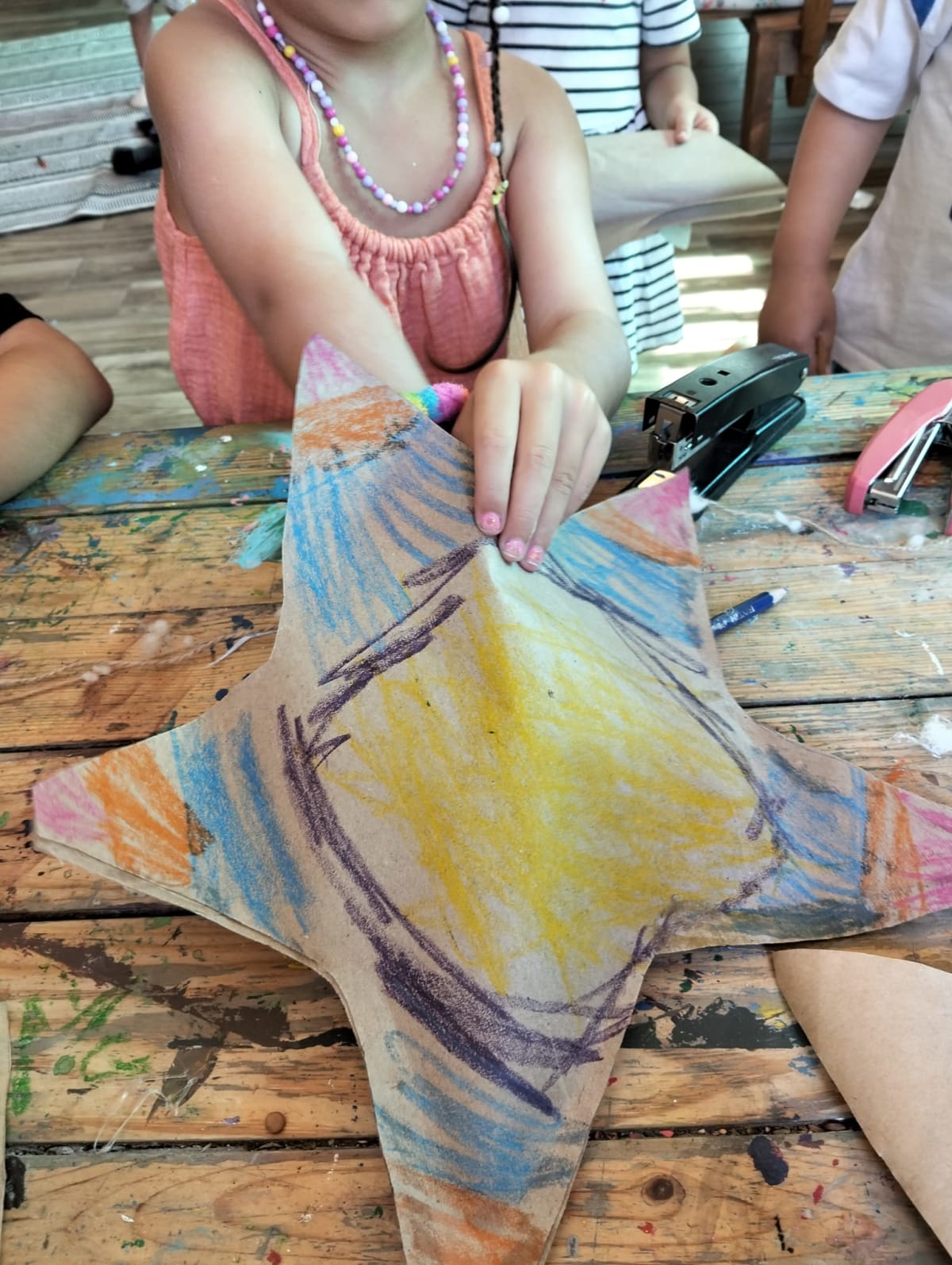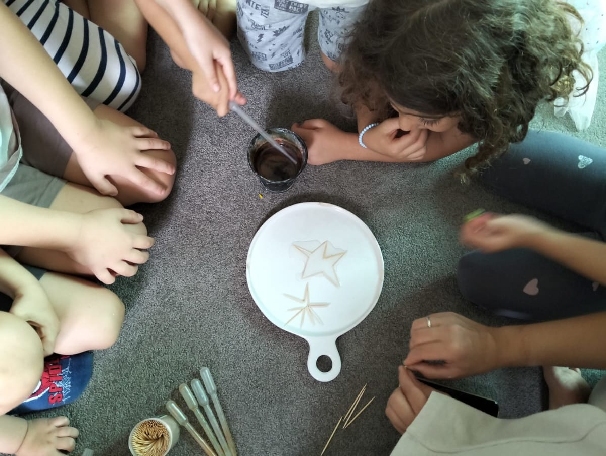 🌟 Yıldız tasarımları: Ahşap çubukları bağlayıp yıldız formlarını kurduk; örüntü ve dengeyi keşfettik.