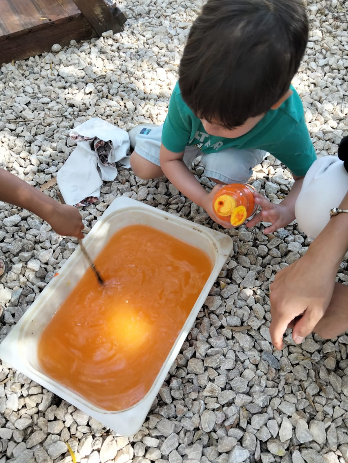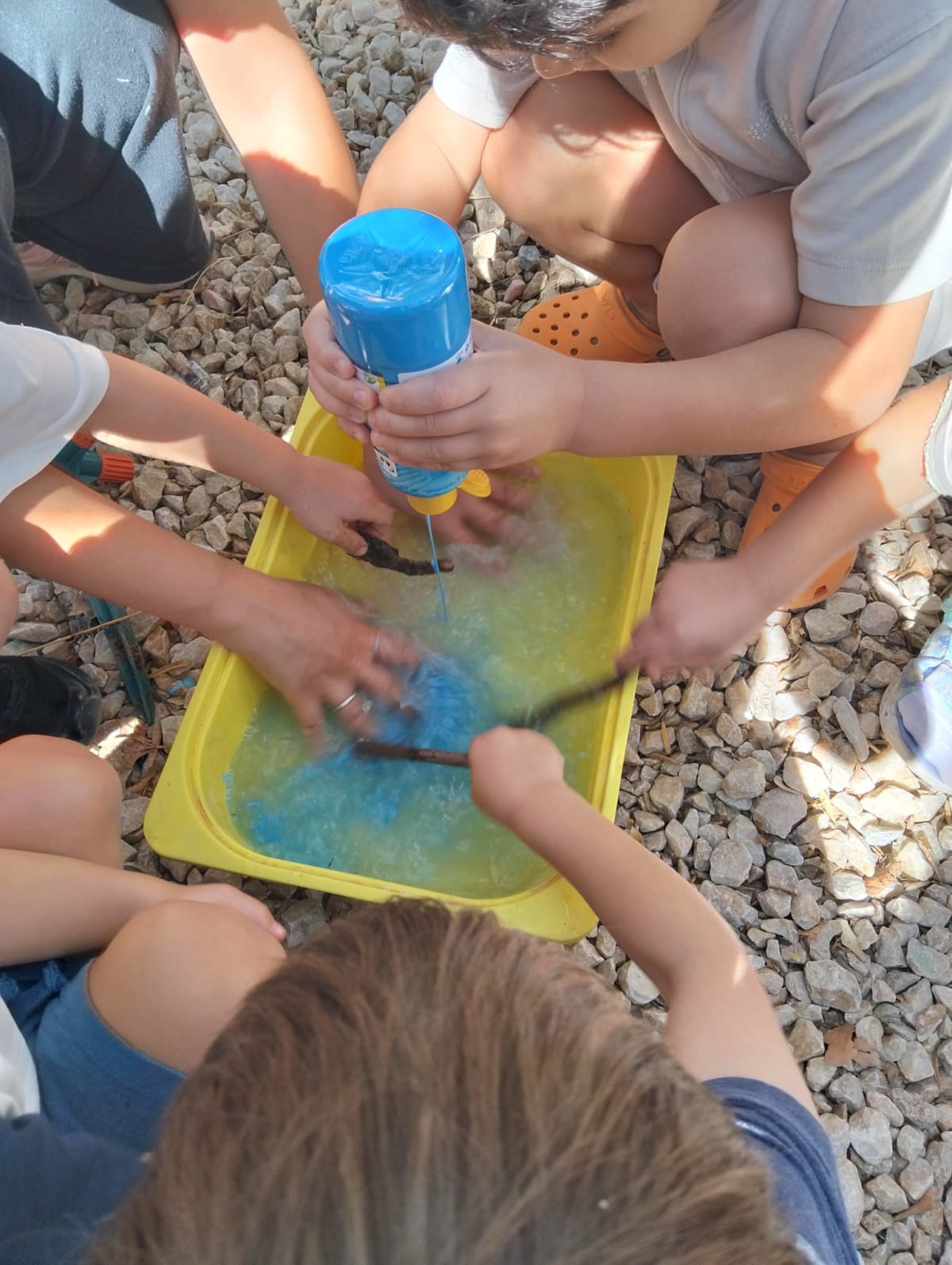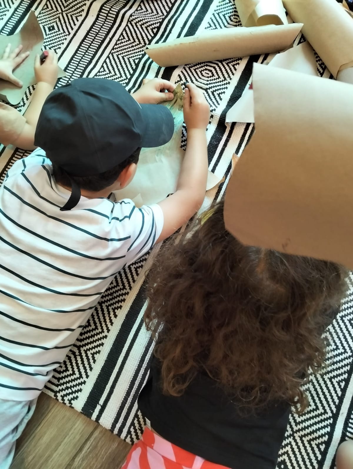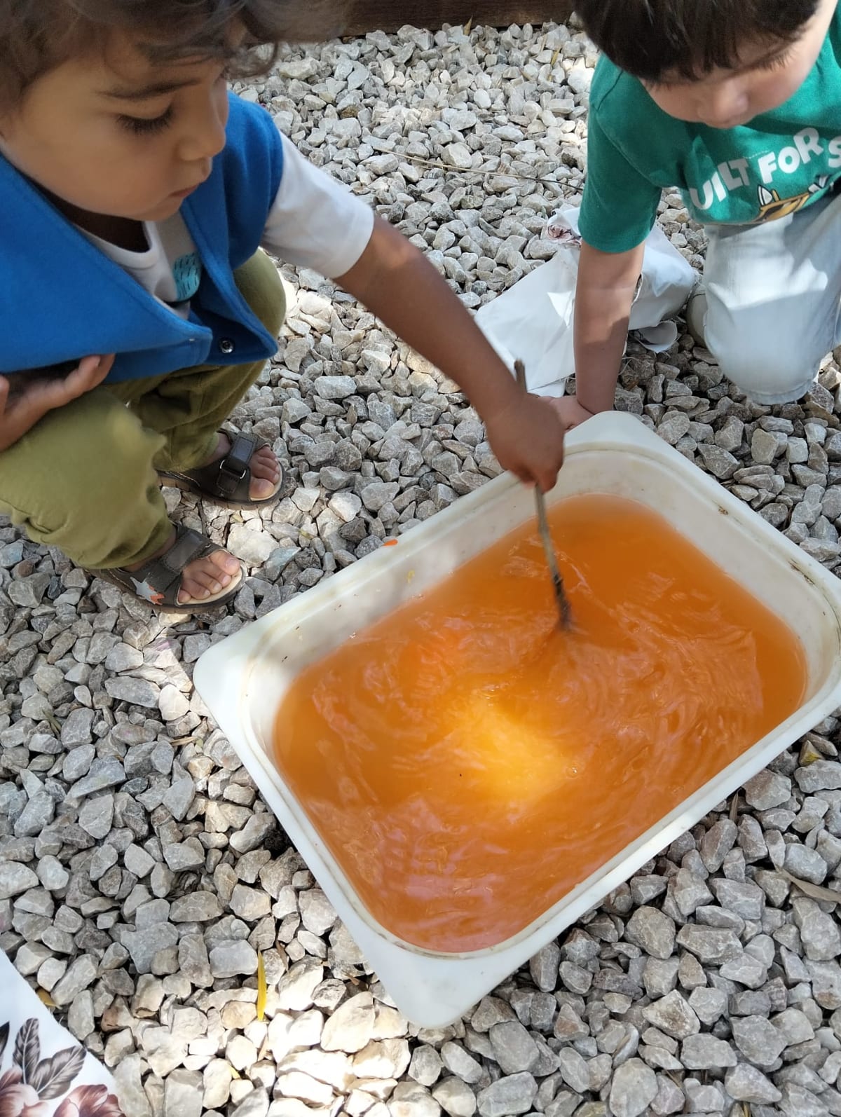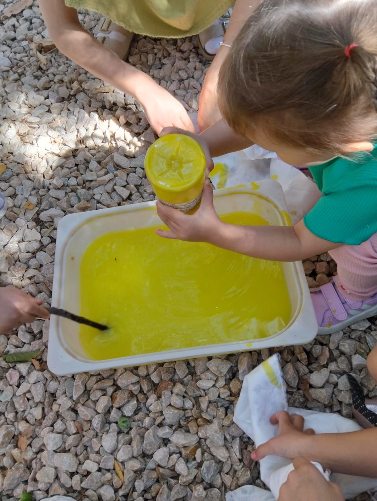 🌼 Doğal boya banyosu: Bitkisel tonlarla kumaşlarımızı renklendirdik; sıkıp-açarak özgün desenler oluşturduk.