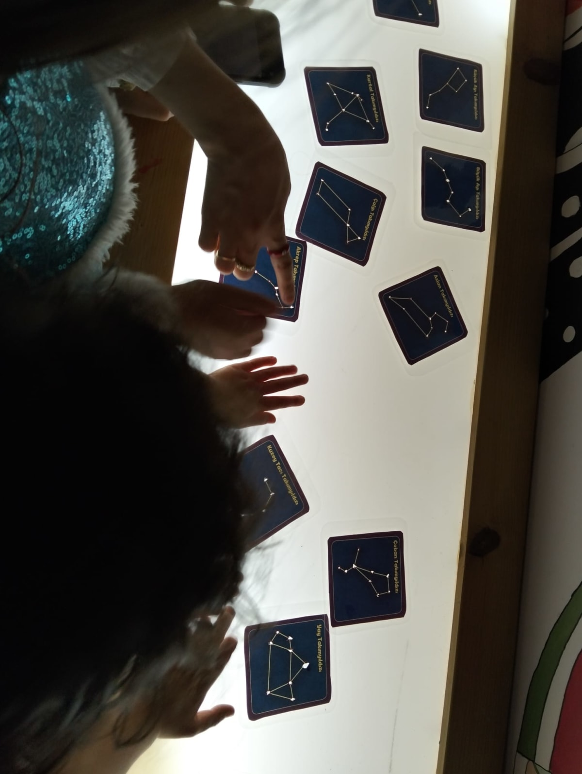 🔆 Işık masasında eşleştirme: Kartlarla gölge–ışık oyunları kurduk, dikkat ve gözlemimizi güçlendirdik.