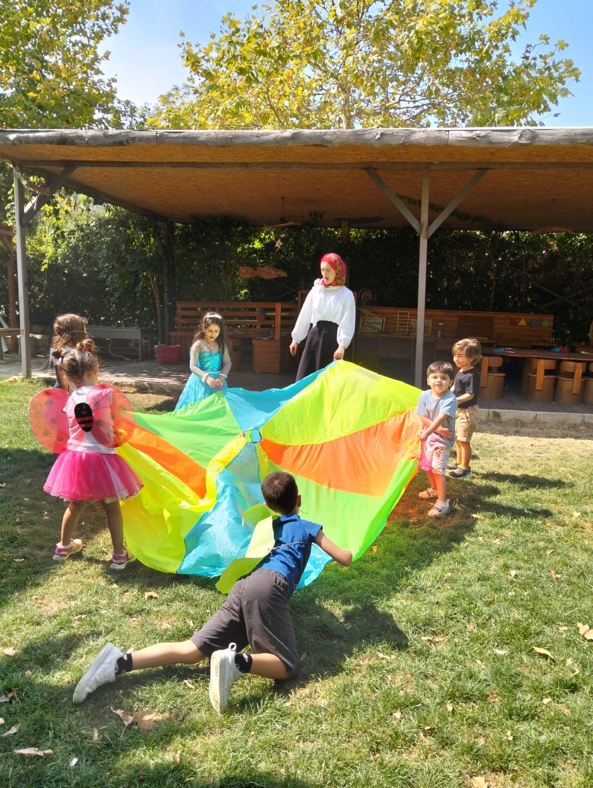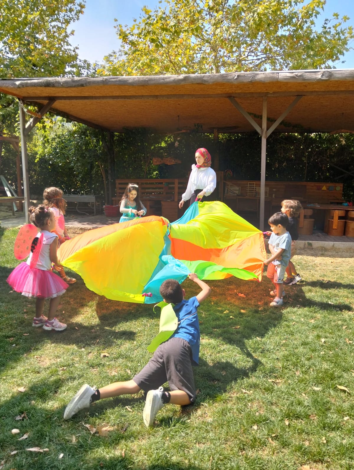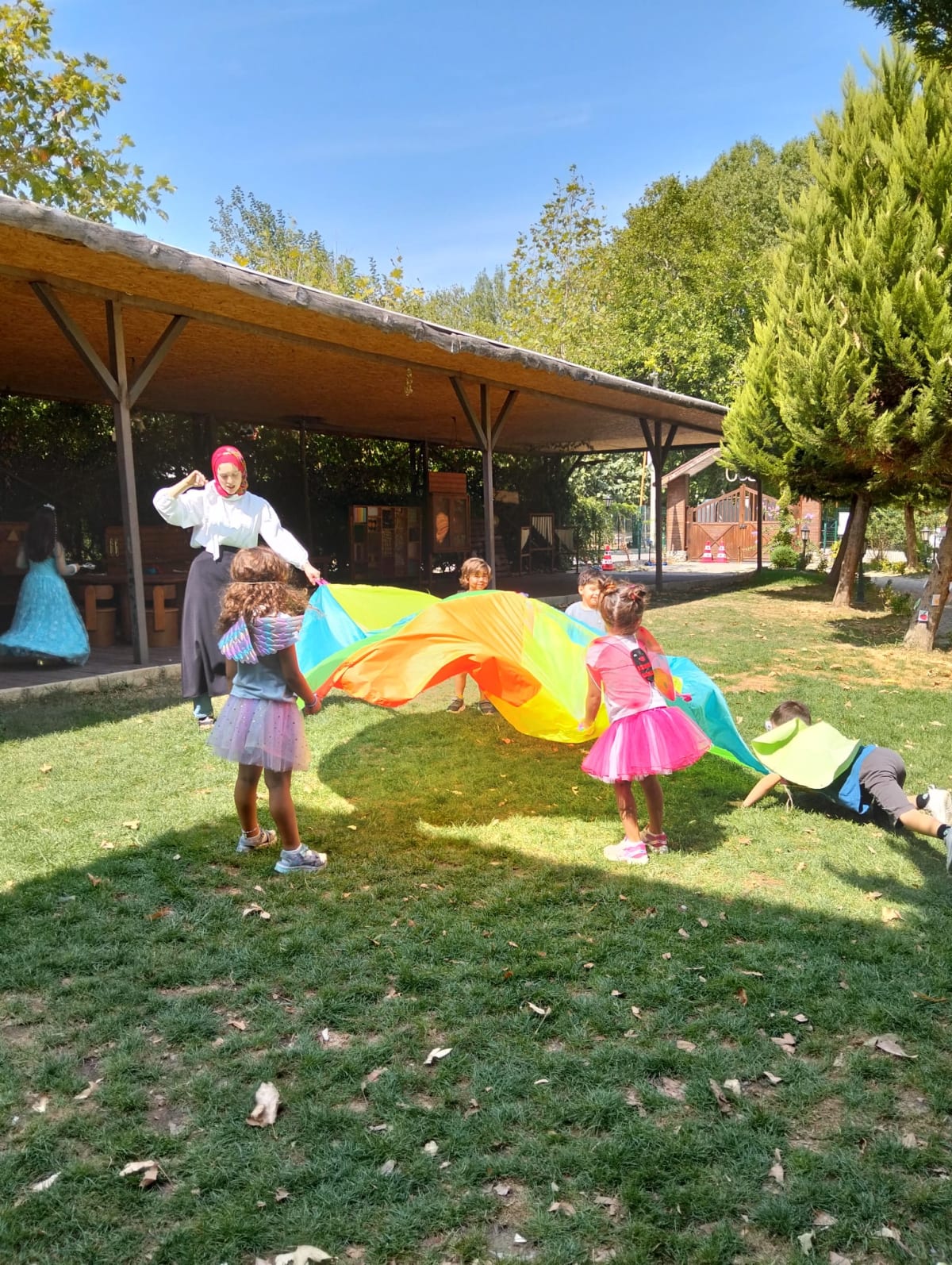🌀 Paraşüt etkinliği: Oyun paraşütüyle dalga, tünel ve top taşıma oyunları oynadık; birlikte hareket etmenin neşesini yaşadık.