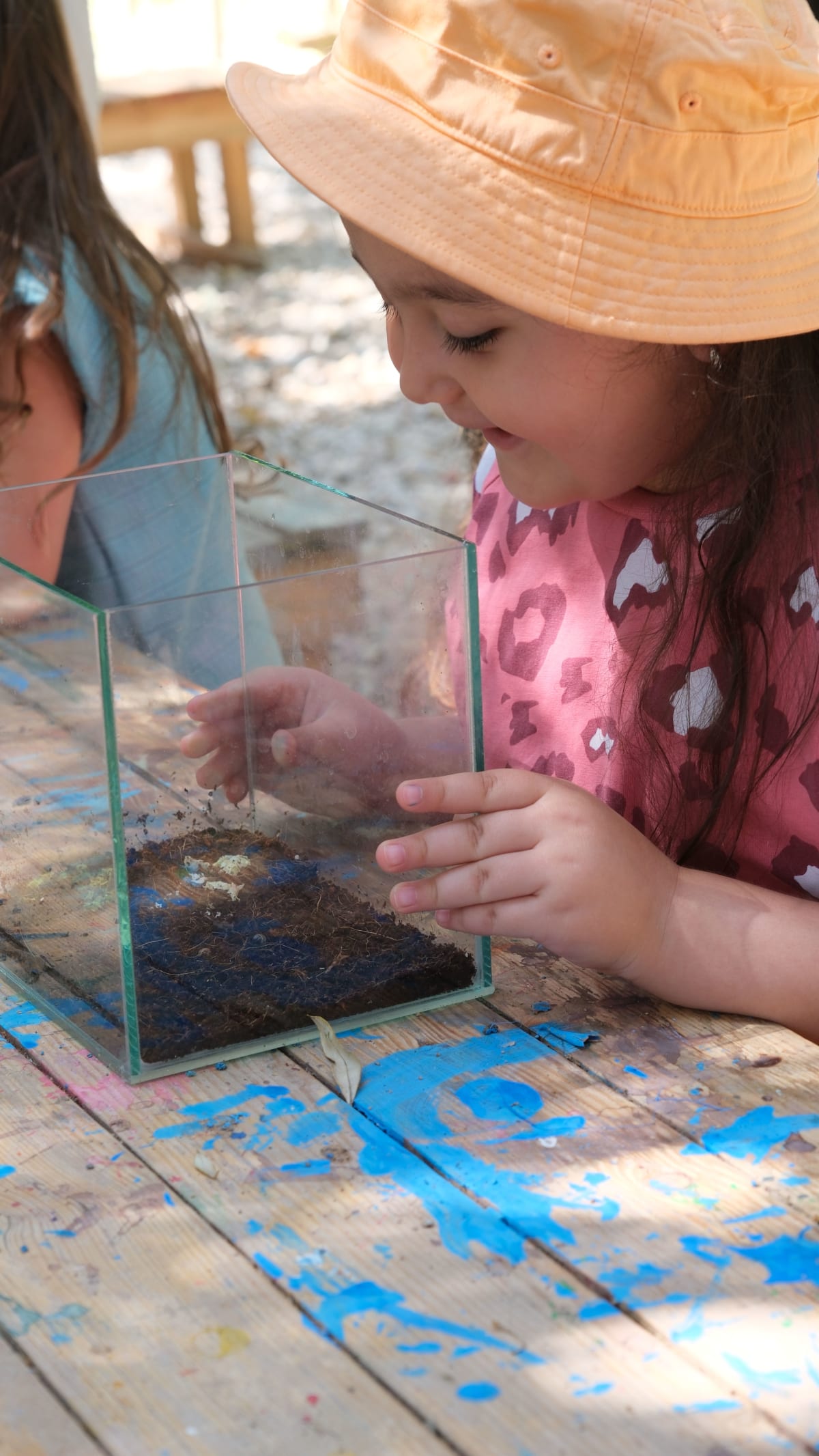Sabah olur olmaz okula geldim. Beni arkadaşlarım ve kocaman bir doğa karşıladı. İlk iş olarak toprağın içine baktık… İçinde minik canlılar vardı! Karıncalar, solucanlar… Hepsi çok ilginçti. Onlara marul verdik, izledik, sabırla bekledik. 🐌