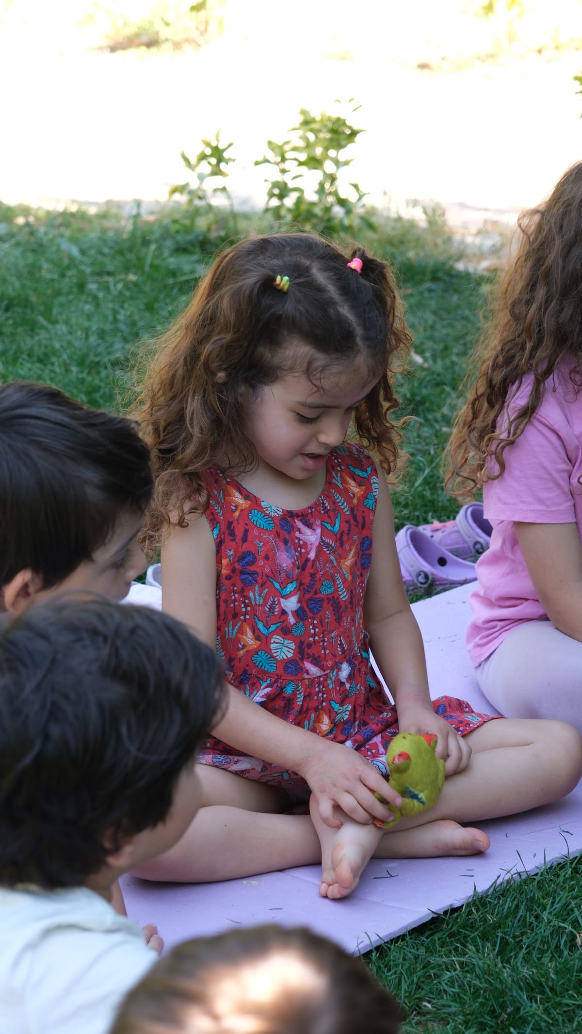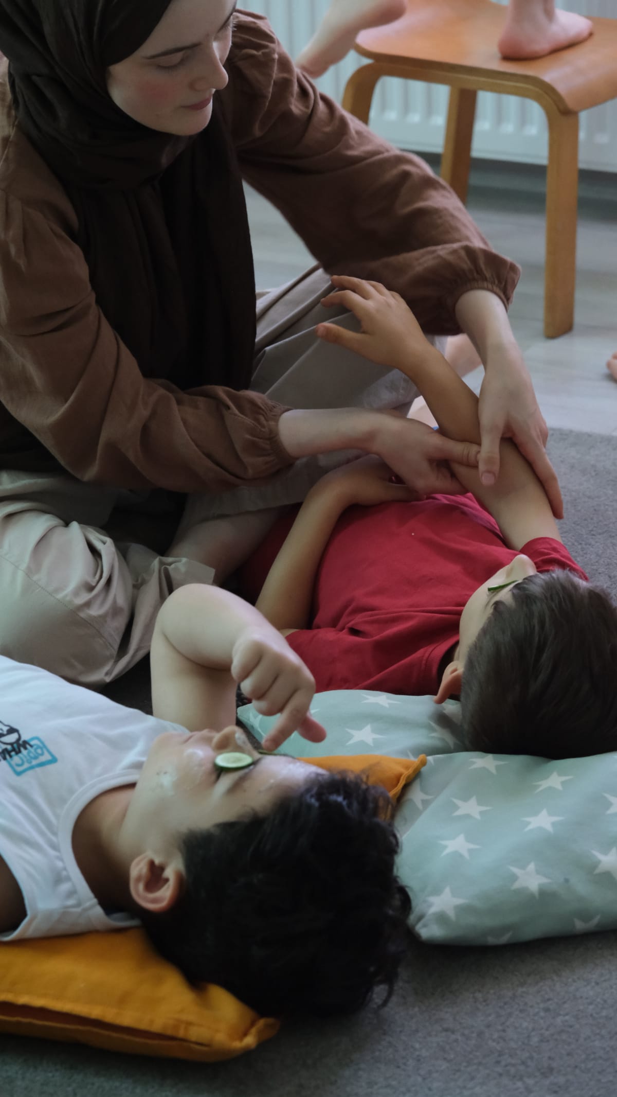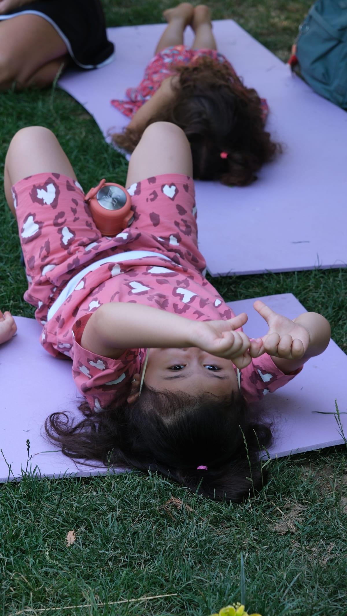 Sonra hep birlikte yere oturduk ve biraz nefes çalışması yaptık. Ellerimizi kalbimize koyduk, gözlerimizi kapattık… Sessizlik çok güzeldi. 🌿