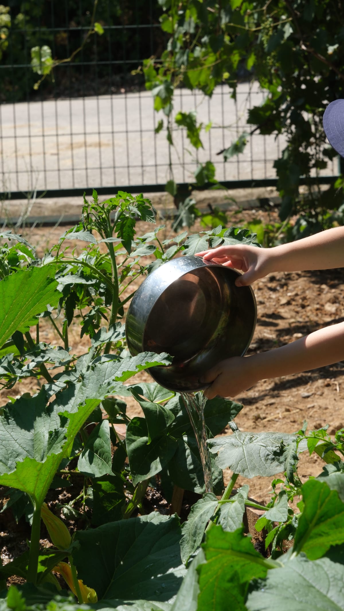 Sonra sıra geldi bahçeyi sulamaya. Bitkiler susamıştı! Ellerimizle su taşıdık, yapraklar bizden teşekkür eder gibi sallandı. 🍃💧