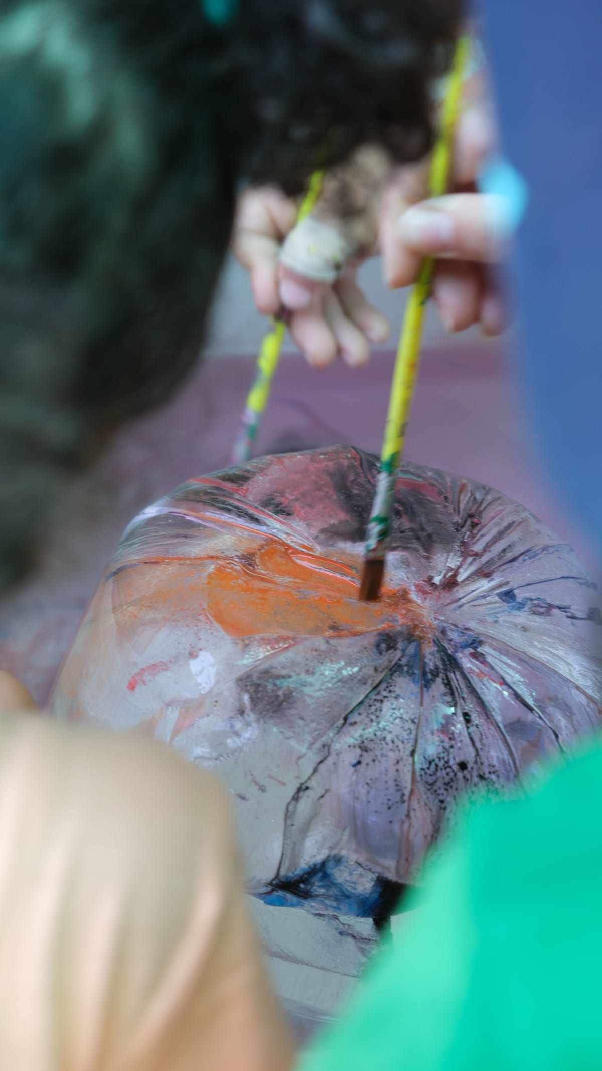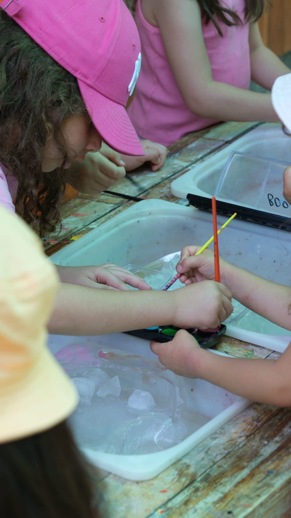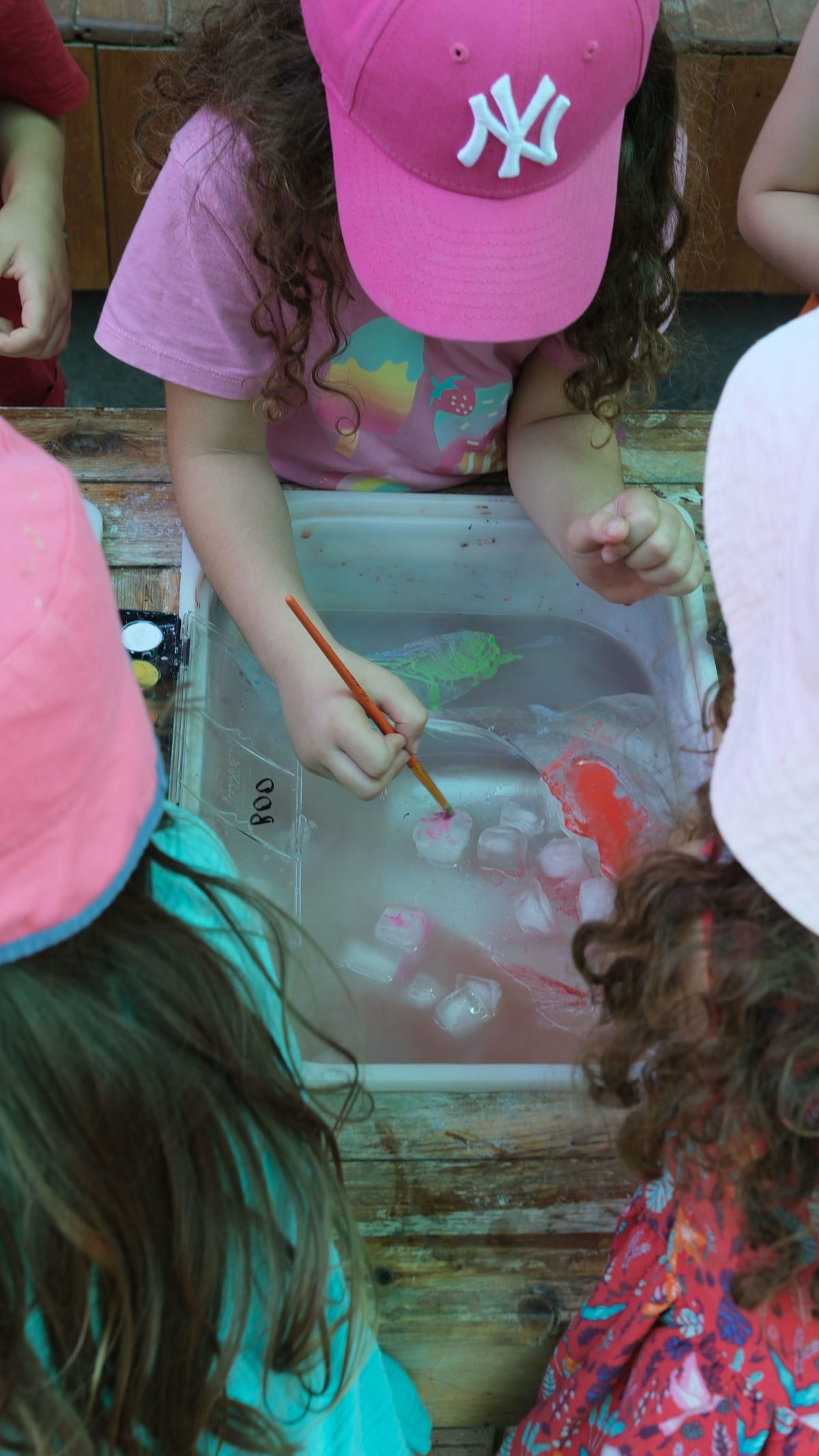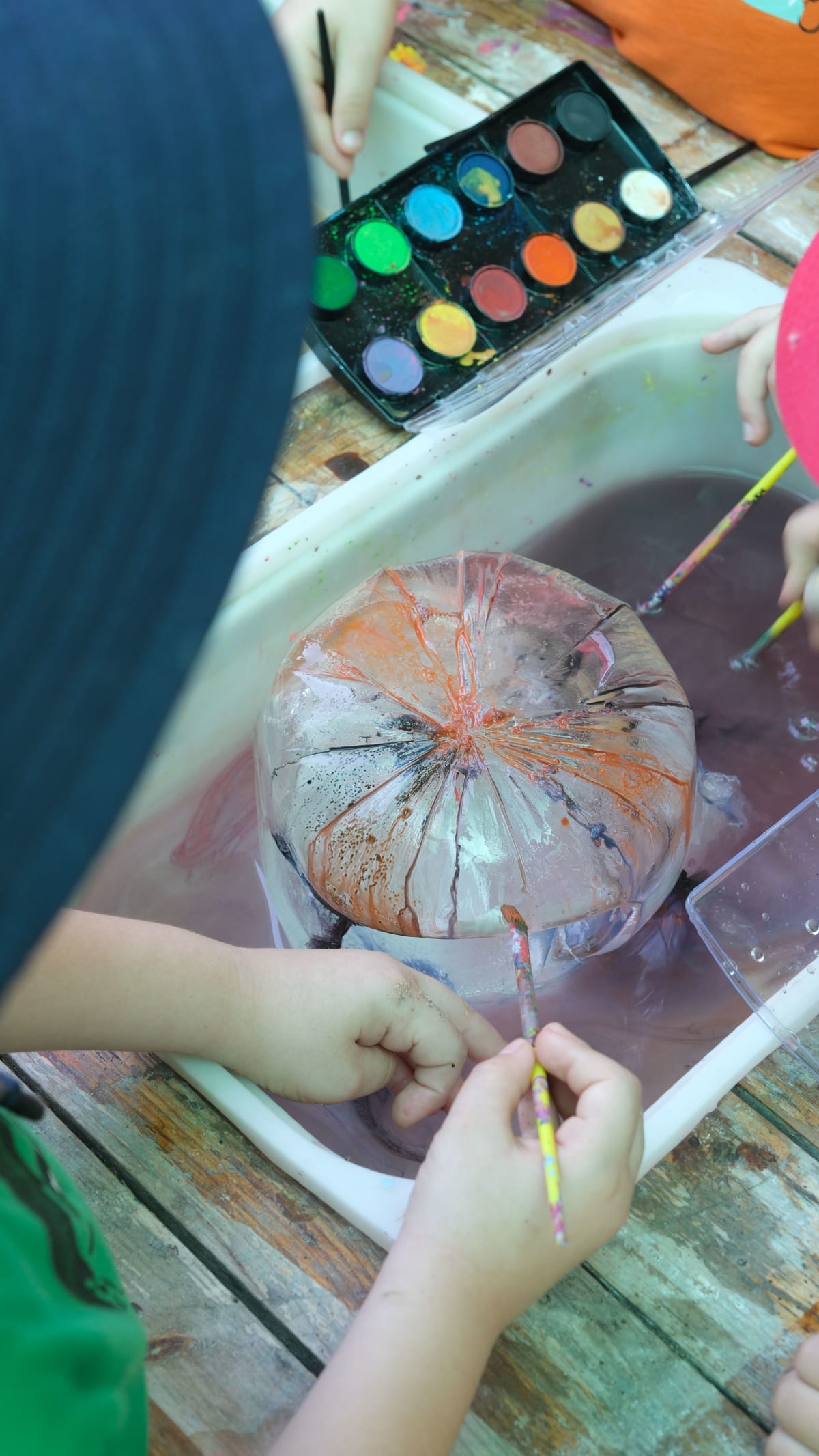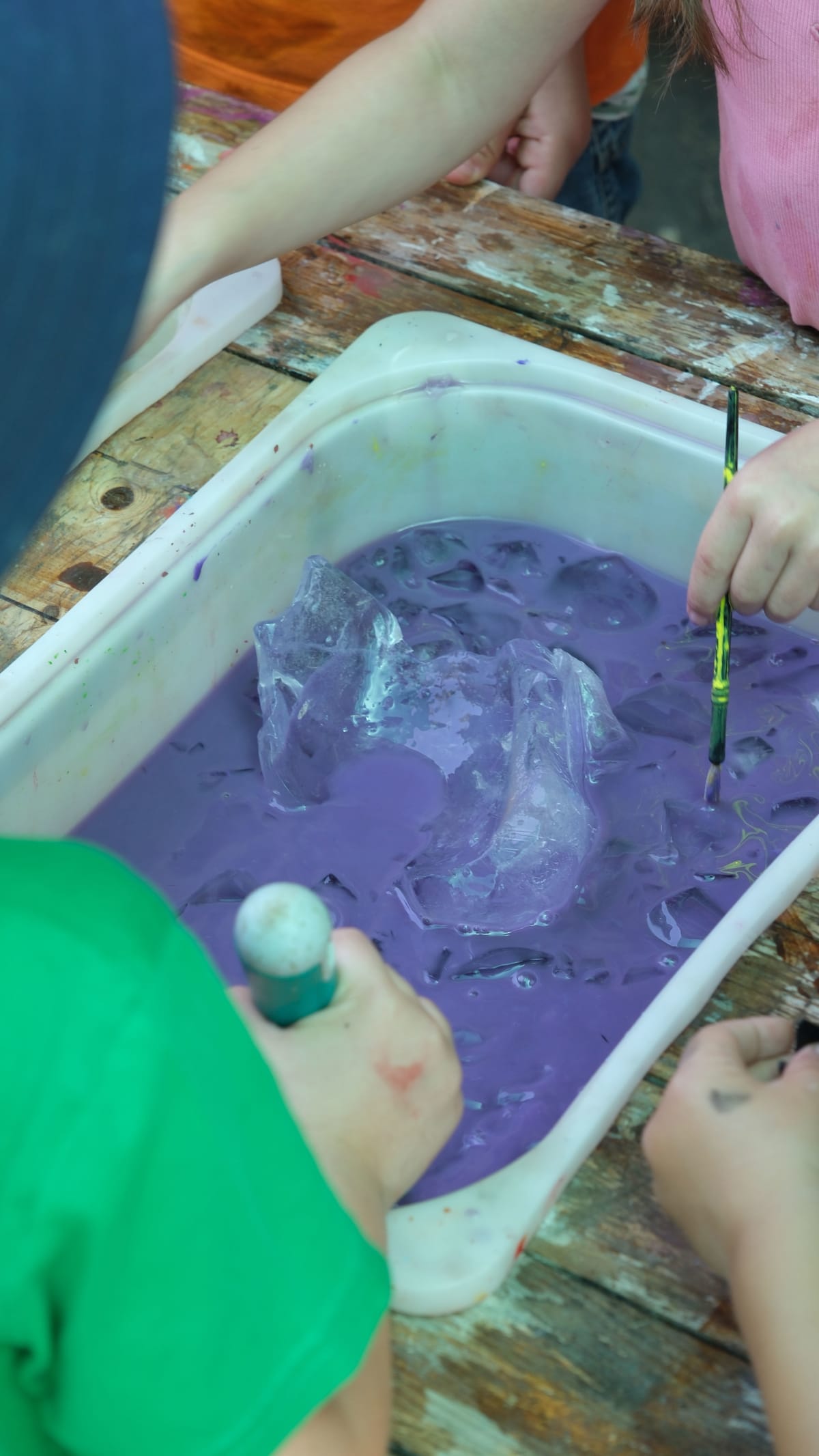 Öğleden sonra serinlemek için buzlarla resim yaptık! Evet evet, buzları boyadık ve renkli izler bıraktık. 🎨