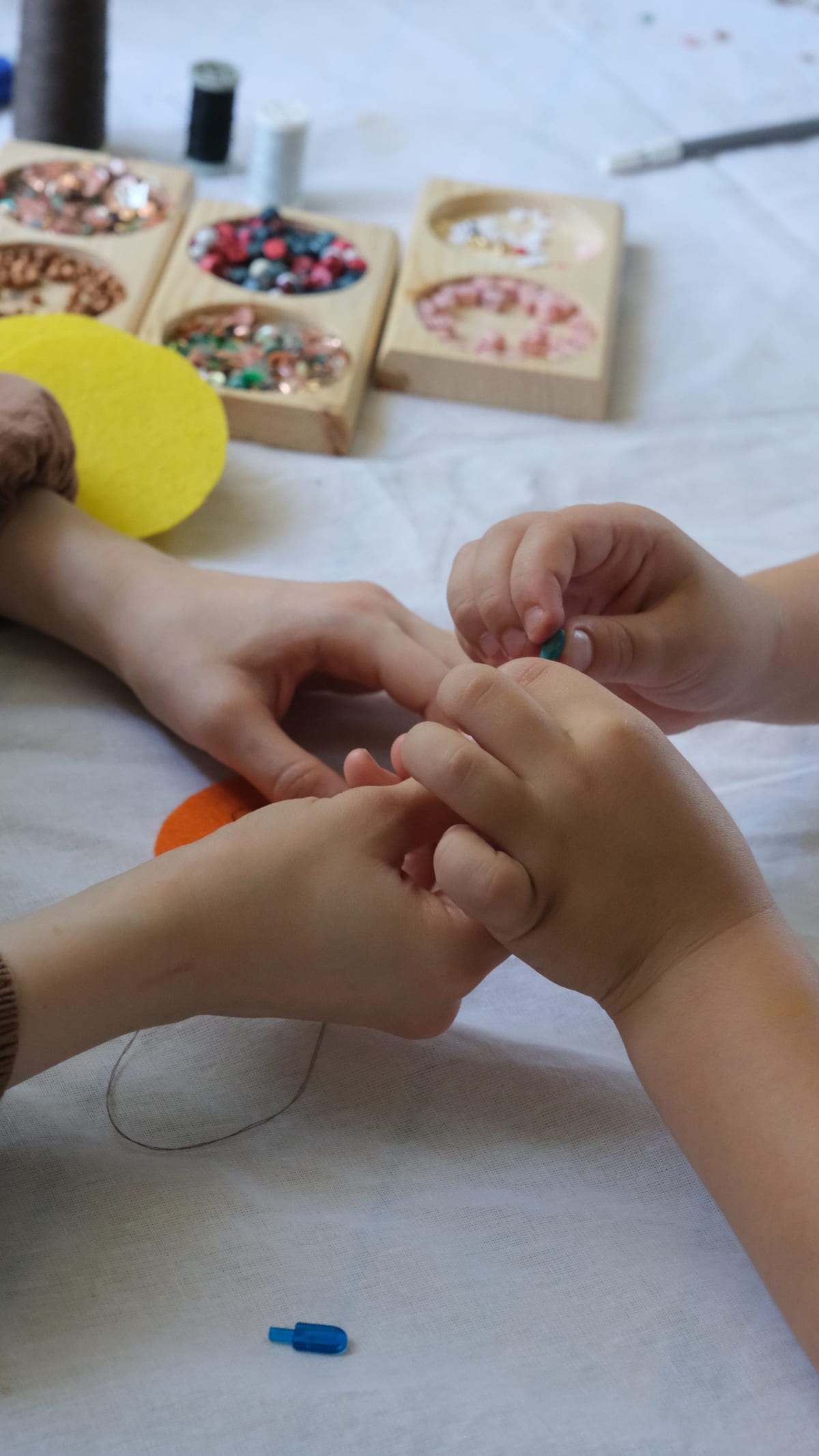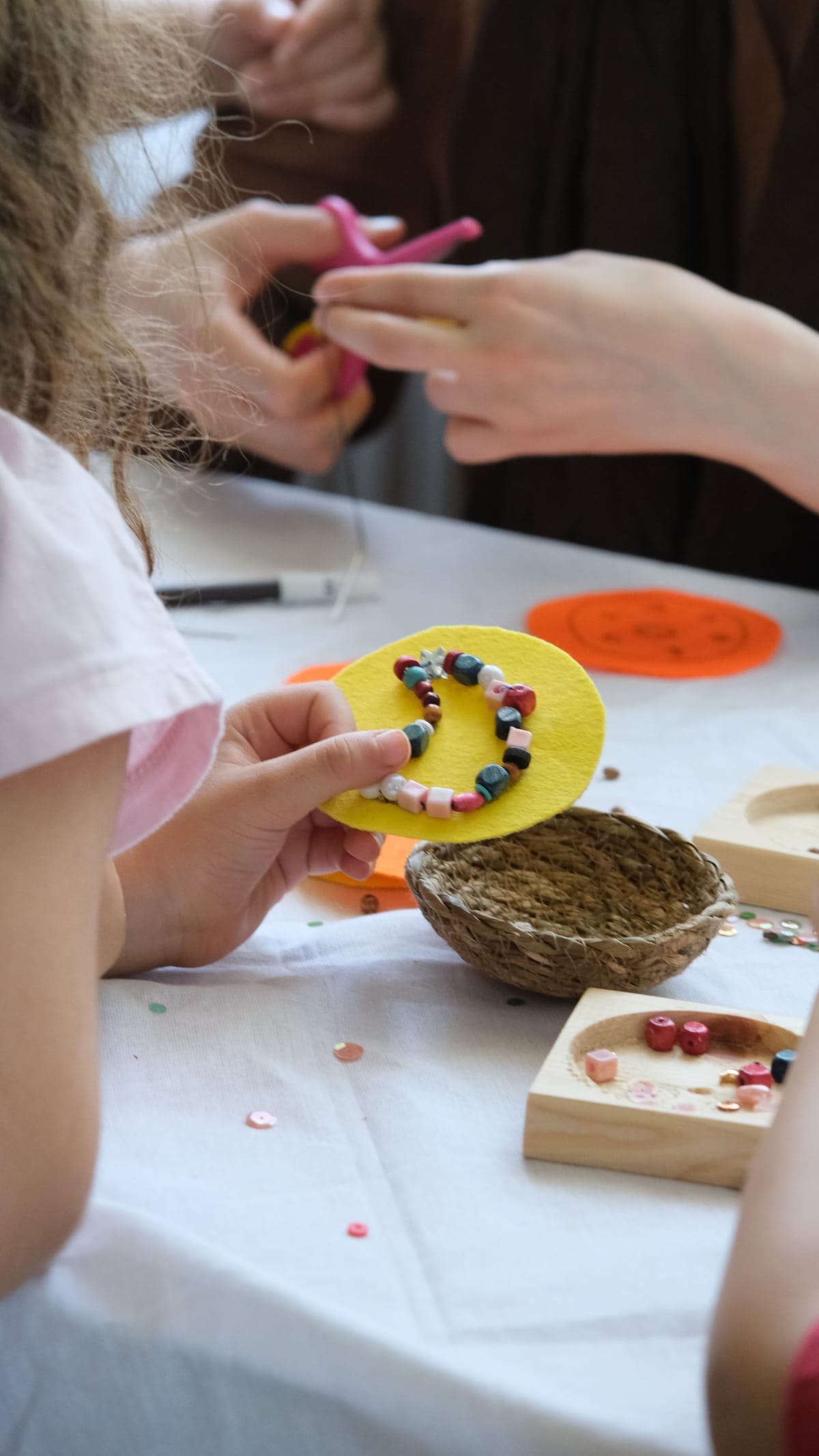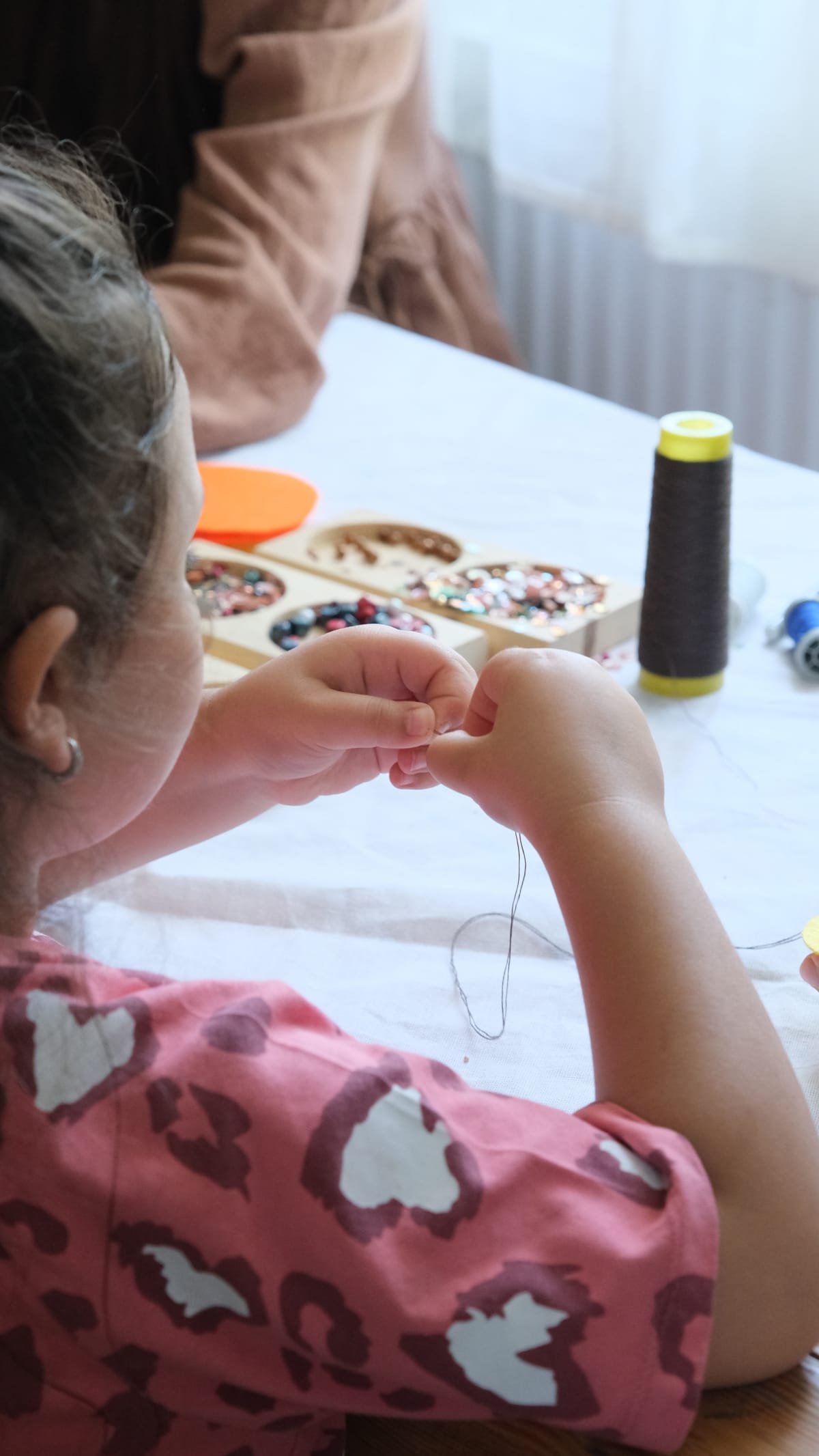 Son olarak boncuklarla süsler hazırladık. Kalpler, yıldızlar… El emeğimizle güzellikler yarattık. 💫