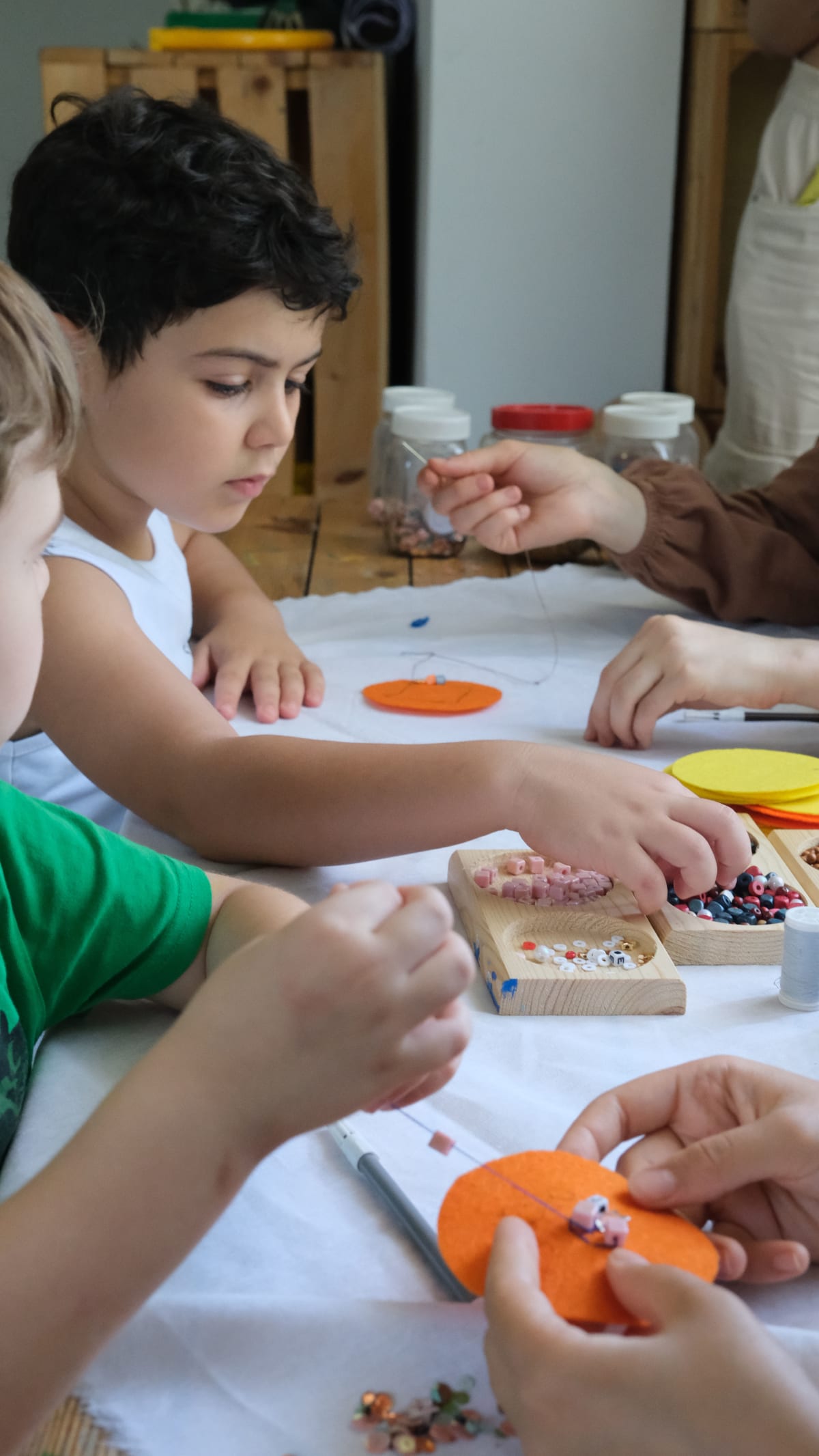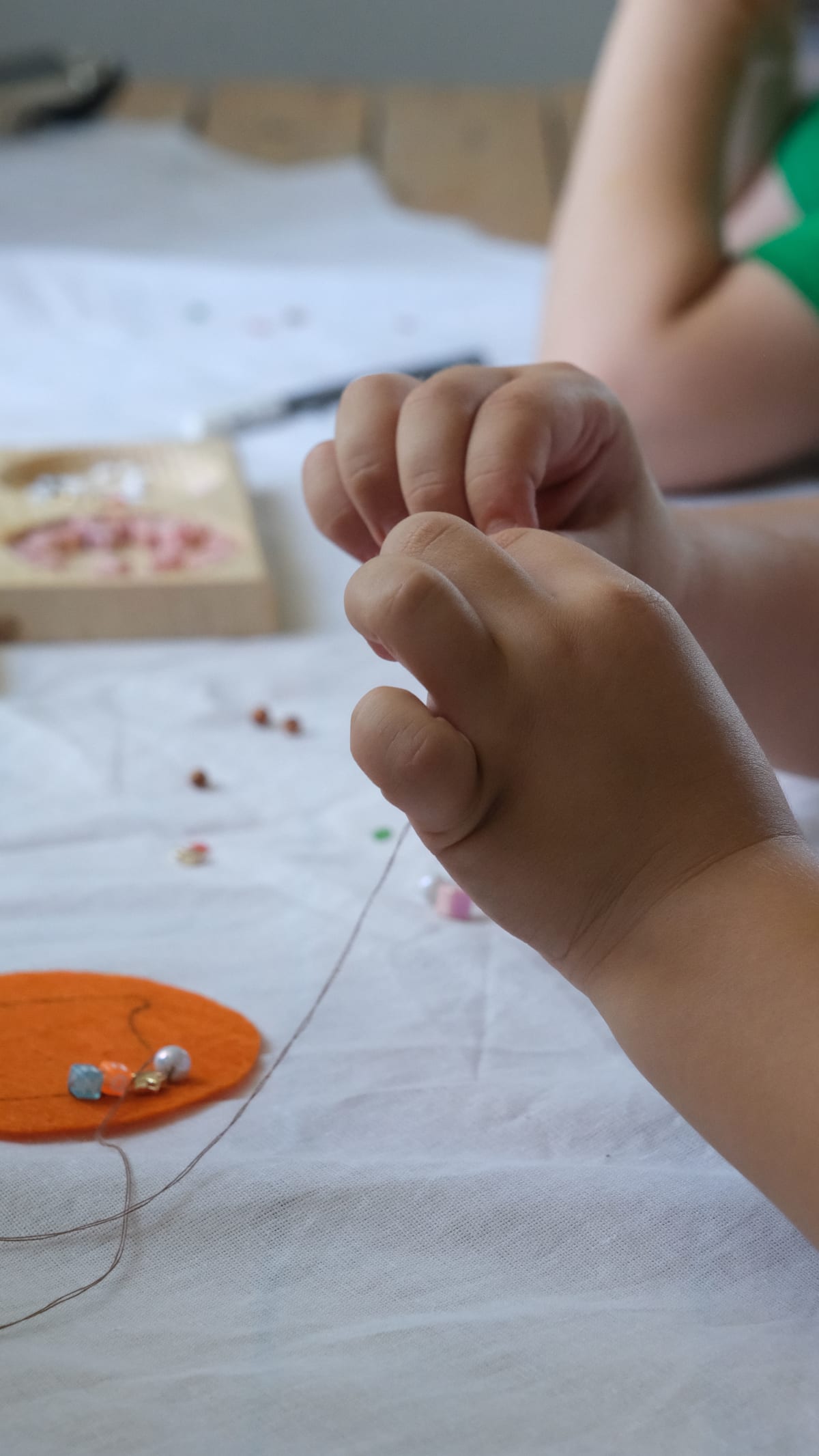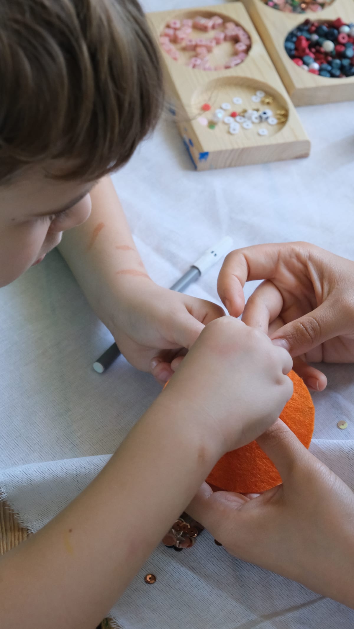 Son olarak boncuklarla süsler hazırladık. Kalpler, yıldızlar… El emeğimizle güzellikler yarattık. 💫